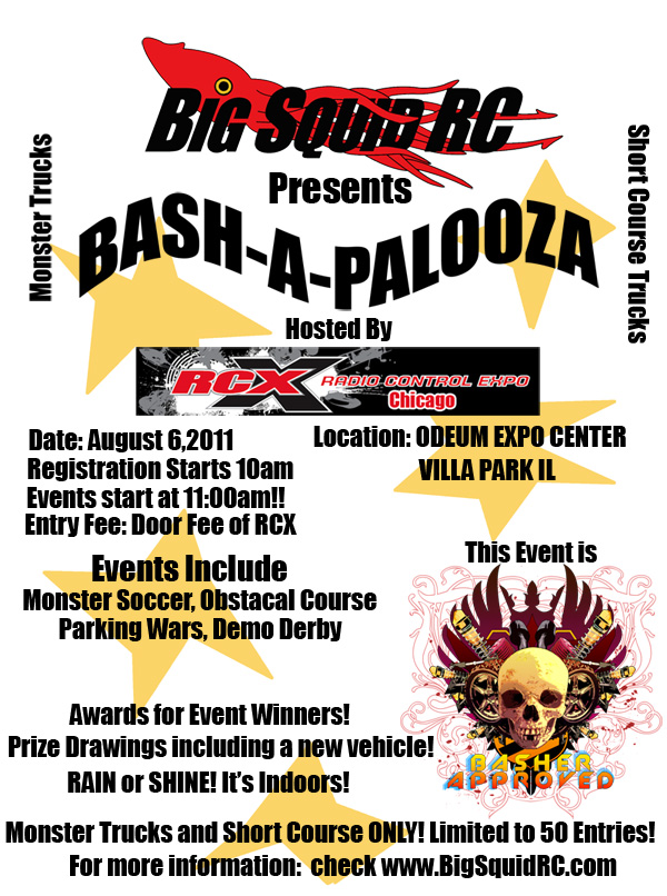 Save the date! August 6, 2011 – Bash-A-Palooza at RCX Chicago!. This years Big Squid RC Bash-A-Palooza event will be held at RCX Chicago! Like previous events, we will have a obstacle course, monster soccer, demolition derby, and a few other surprises!