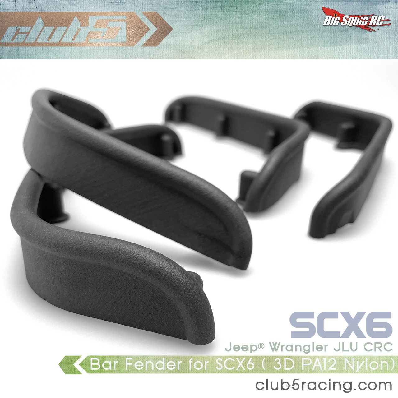 Club 5 Racing’s Bar Fender Set for the SCX6 is priced at $119.99 and are available for sale at club5racing.com.