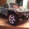 Alright so a few months ago I was talking to Dave over at CPC PowderCoating and he told me about a new way to put designs and patterns onto objects, I instantly thought of a lexan body and within a couple of days I had one ready to be dipped. Before I tell you about how it turned out first let me tell you what hydrodipping is. Hydrodipping uses water to push an image onto an object. So first they take the object that is going to be dipped and they apply a base coat then, it is atatched to an arm on the hydrodipping machine and held over a tank of water. After the object is ready to be dipped a thin film is layed out on the surface of the water and sprayed with an activator that makes the film bond to the object. Then the arm lowers the object down into the water through the film and the water pushes the film into every crack and crevise on the item. After its removed from the water it’s cleaned to remove any excess film and then clear coated. The only bad thing about hydrodipping is that it can only be applied on the outside of the body so I’m not sure if it will take a lot of abuse but it certainly looks awesome!