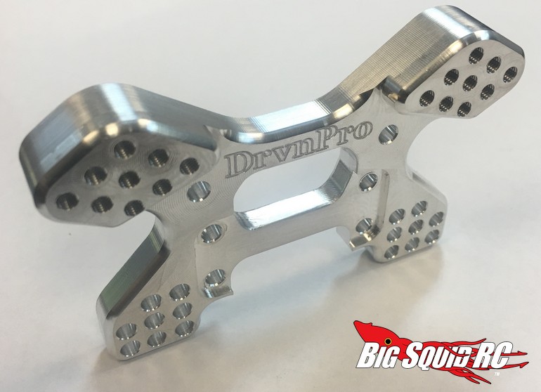 New from DRVN Pro is a very trick Front Shock Tower for the Yeti and Score Trophy Truck. The DRVN Pro tower is machined from 6061 aluminum to make it much stronger than the stock plastic part and to give it a sharp appearance. Also of note, it has multiple shock and camber rod mounting positions for maximum tuning flexibility.