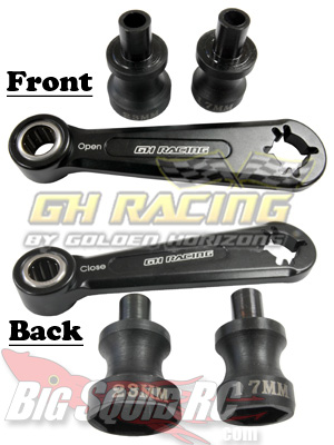 New from GH Racing is the Aluminum Hex Wrench III. It’s a one way nut hex wrench with two sides, open and close. It built for interchangeable sockets and comes with a 17mm and 23mm. You can also buy a 24mm if you happen to need that size as well. The handle can also be used as a flywheel wrench. This is sounding like one of those ‘must have’ tools in the box!