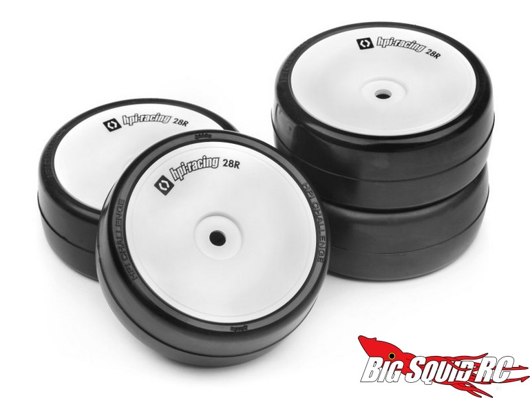 New from HPI Racing is the HPI Challenge 28R Wheel & Tire Set. These pre-mounts are intended for control/spec racing and can be used indoors on carpet or outdoors on pavement. The pre-mounts come as a set of four and sport a unique blend of rubber that yields good traction as well as excellent durability. A 24mm wheel with zero offset is used along with a closed cell foam insert.